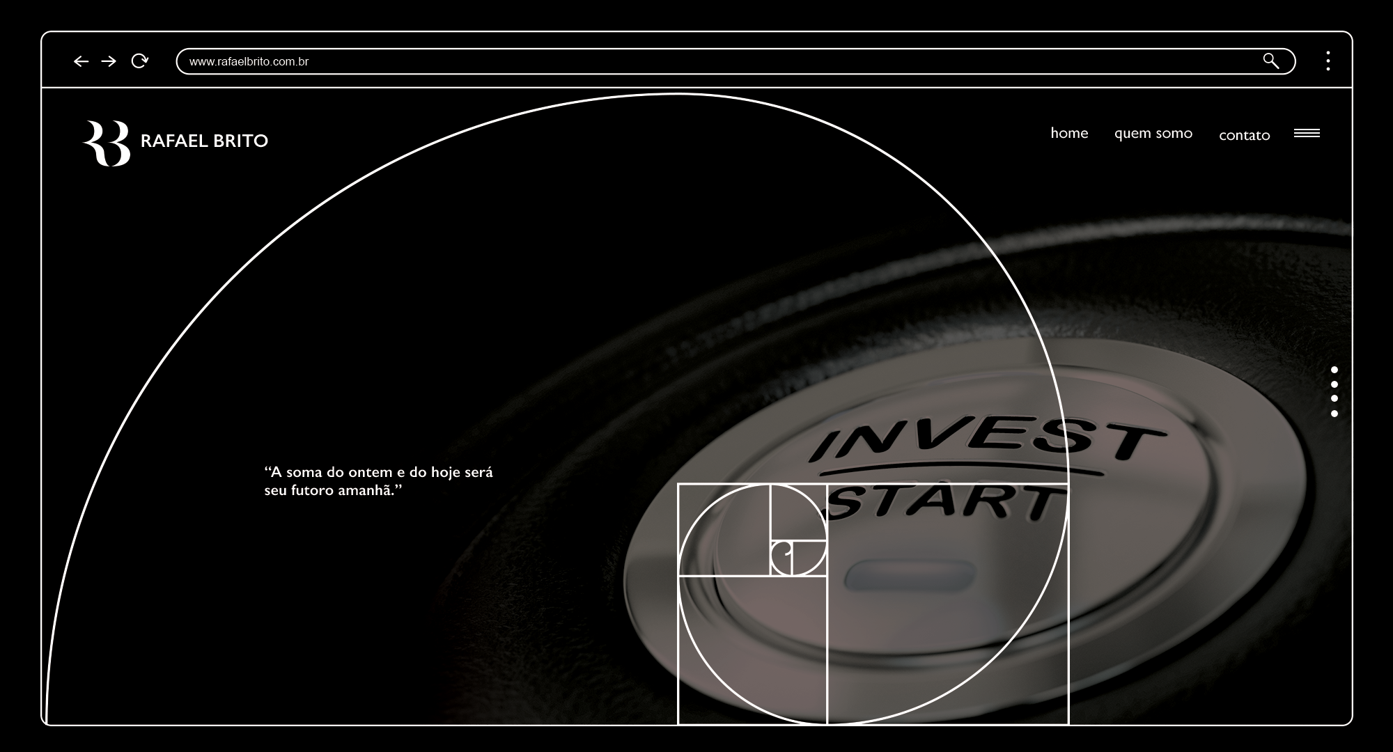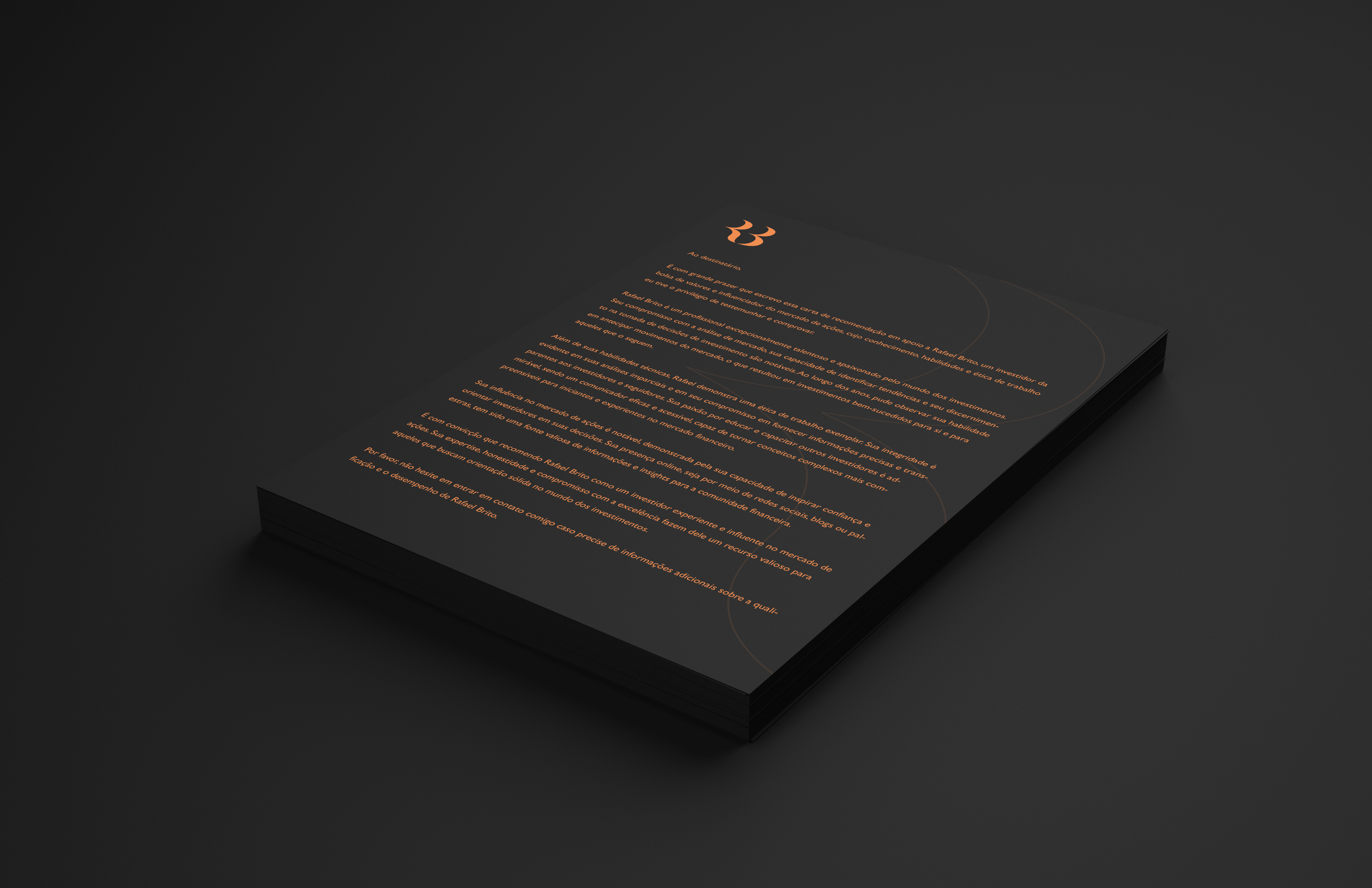 A brand was developed for a finance influencer named Rafael Brito, who is a consultant for the Securities and Exchange Commission (CVM) and a certified investment specialist (CEA). The logo was created from his initials and aims to convey an image of professionalism and trust in the financial market. Rafael Brito is recognized for his knowledge and experience in investments and aims to help people manage their money efficiently. His logo reflects his competence and authority in the financial sector.